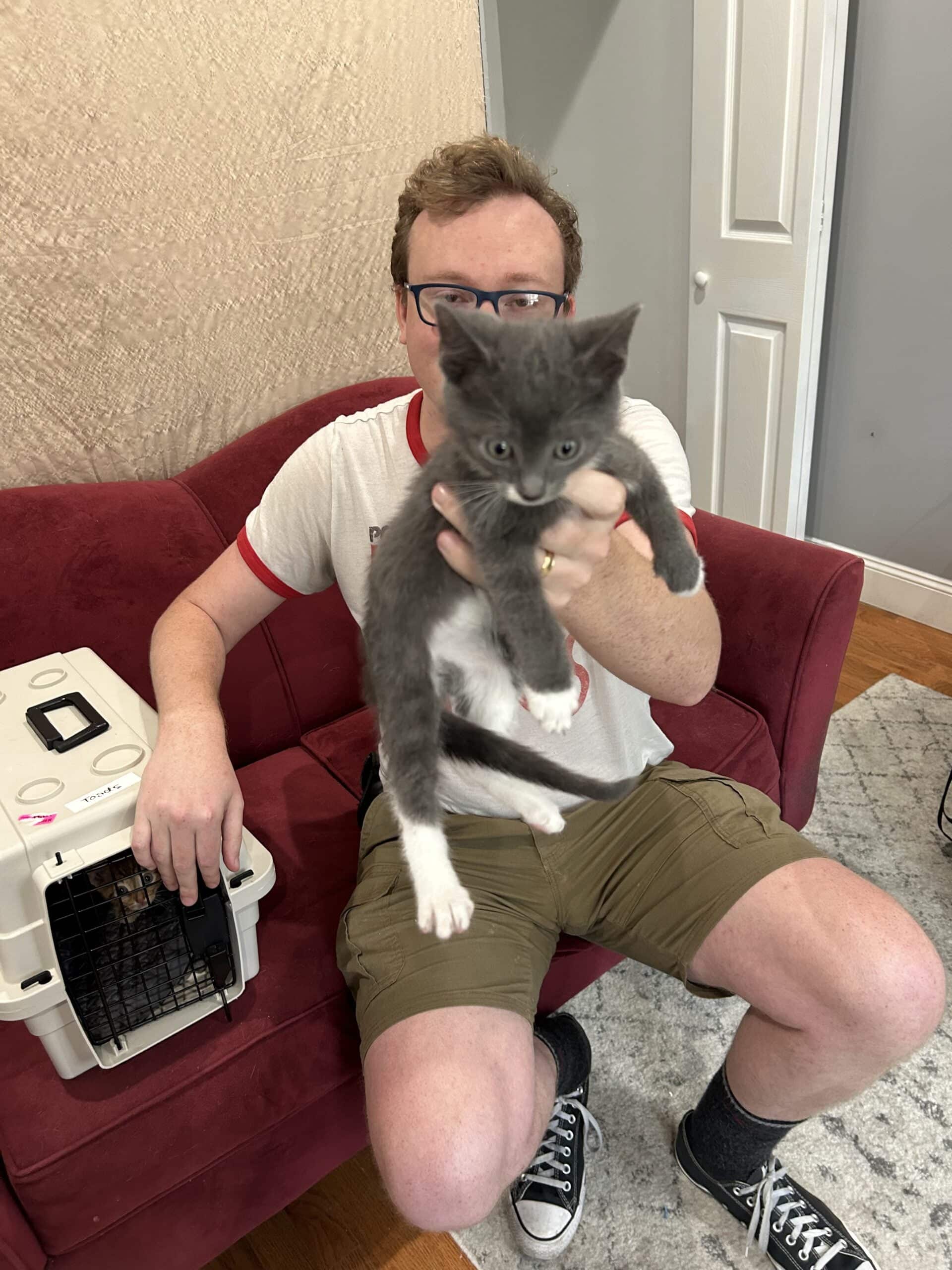 Just got them and wanted to share pics of their adorable stupid little faces (and Andy's because SOMEBODY had to hold the little squirmers). More details (names, anybody?) coming soon, so watch this space