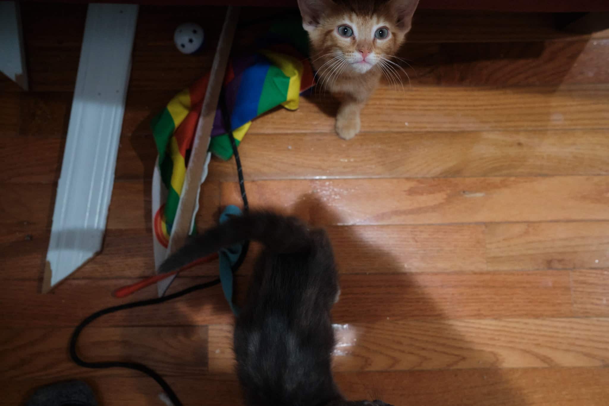 Teddy, the orange tabby, is probably the protagonist of his litter. He's a talker, a friendly boy, and maximally adventurous. He loves sitting in laps and is always the first to approach whoever comes through the door.