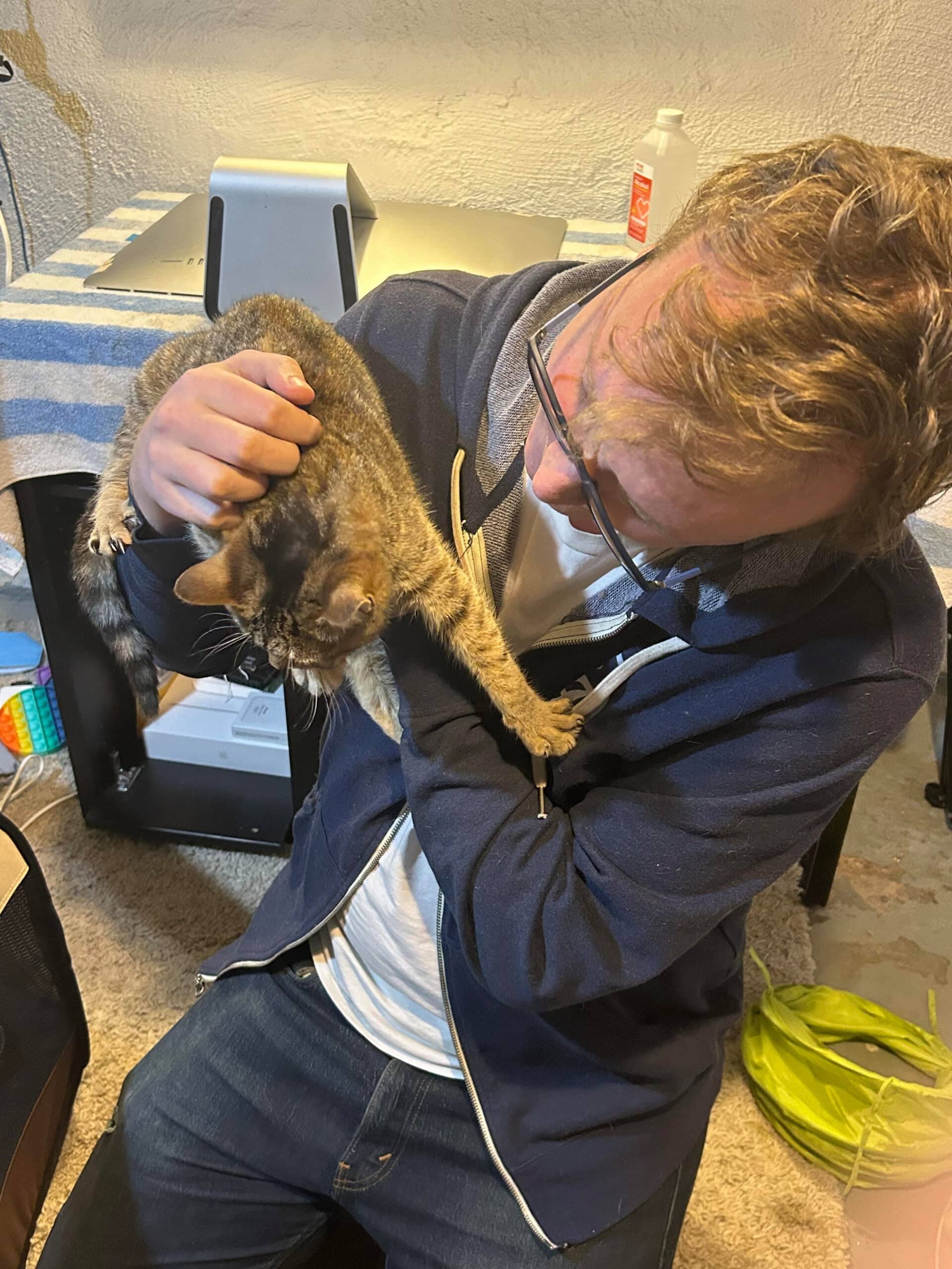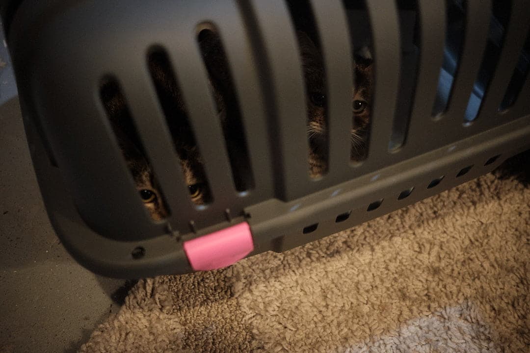 We’ve added two new foster kitties to our household, Sammie and Scottie! Their first few days here have been quite an adventure. We tried containing them in a playpen, but unfortunately Sammie quickly escaped. She's a clever girl, and slippery too! We couldn’t find her for a long time, but we left food and water out for her and hoped for the best. Eventually we found her hiding between some piles of boxes. When Andy tried to pick her up, she got very scared and sprinted away to a new hiding place. After visiting several times and putting out fresh food and water for her, we eventually were able to pick her up by wrapping her in a towel, and we successfully placed her in the playpen. She still seems scared of her new environment, but she is happy to be able to cuddle with her sister! We will keep visiting her and bringing her food and treats, and hopefully both kitties will feel more comfortable with us soon!